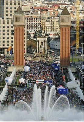 A la feria del corredor fuimos algunos el sábado por la mañana, alli me encontré con José Juan y sus chicas, es una feria muy parecida a la de Madrid, saludé a Isaías, director de la revista Corricolari y siempre tan amable con los “alcarreños”. Cuando vi a José Juan me dijo que había visto un peazo foto de la edición del año pasado con “Olmo” en primer plano, como así era. Aprovechamos a salir pronto pues hacia un sol radiante y esa parte de Barcelona, que se llama Fira es como poco majestuosa, Monjuitch al lado y su Palacio justo arriba. Un ambiente realmente gustoso.