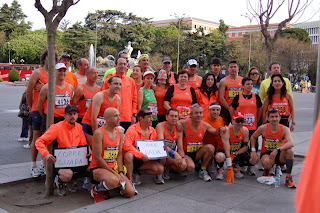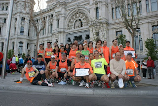 Por un lado los que corrieron: 33 socios, 27 al maraton, 6 a los 10 Kilometros. Aqui tenemos a los que llegaron a tiempo a las fotos de salida: