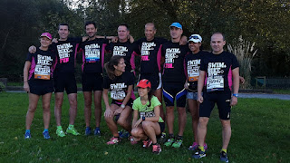 Adjunto alguna foto de los prolegómenos, acompañado por mis vecinos y compañeros habituales de fatiga y entreno. Yo por supuesto soy el más atractivo de los varones (jeje). El caso es que otro de ellos decidió coger unas camisetas especiales para el evento y por eso no llevo la del club para hacer patria. No era cuestión de hacer el «feo».