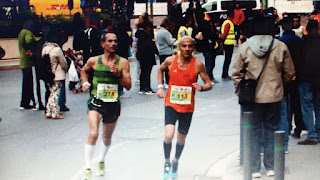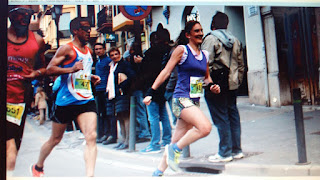 Dolo: estaba inscrita al Maratón pero tenia una lesión que al menos no le impidió correr 14 km. en unos tiempos hacia las 3 horas. Esta chica tiene un estilo de carrera fenomenal.