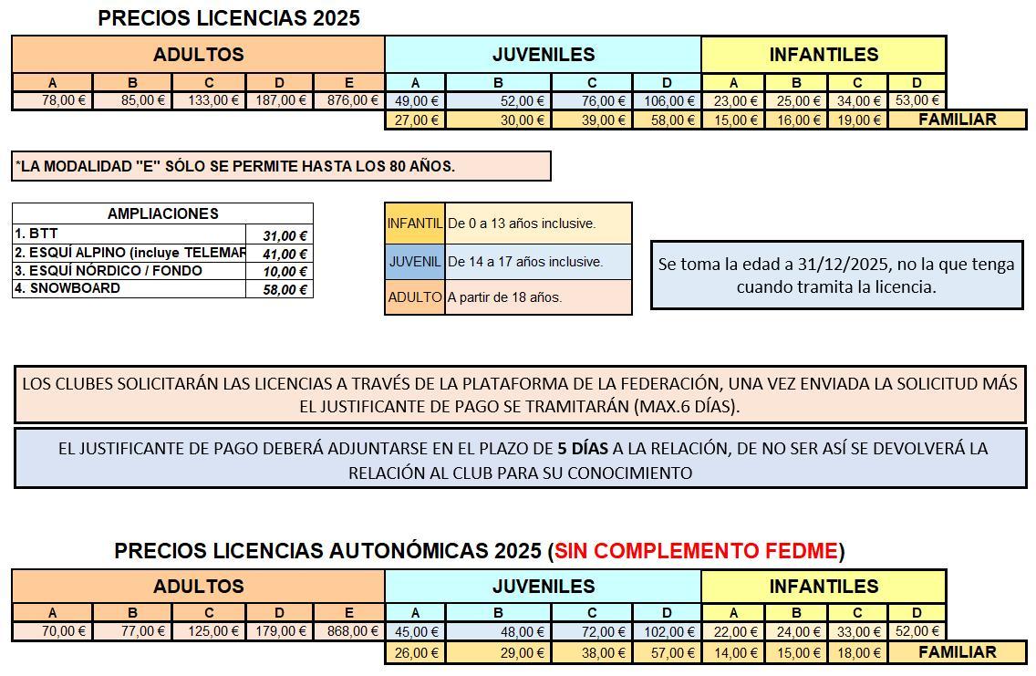 - Cantidad ingresada en la cuenta del club (ES48 2100 8756 1822 0011 5350), modalidad de licencia elegida, descuentos o suplementos aplicados, si se elige complemento FEDME o no. Este año sólo se entrega licencia electrónica (no habrá tarjeta física)