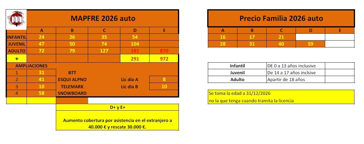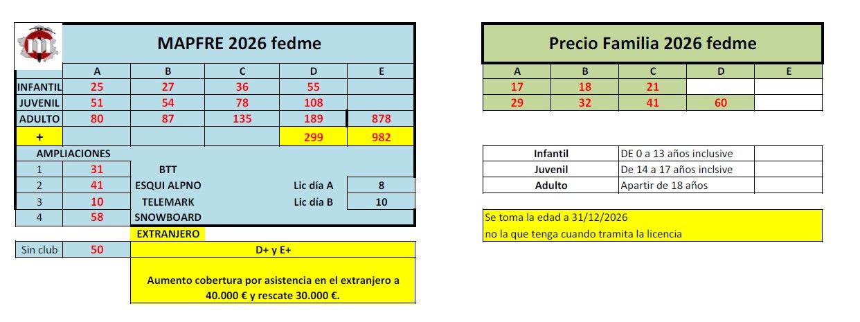 - Cantidad ingresada en la cuenta del club (ES48 2100 8756 1822 0011 5350), modalidad de licencia elegida, descuentos o suplementos aplicados, si se elige complemento FEDME o no. Sólo se entrega licencia electrónica (no habrá tarjeta física)
